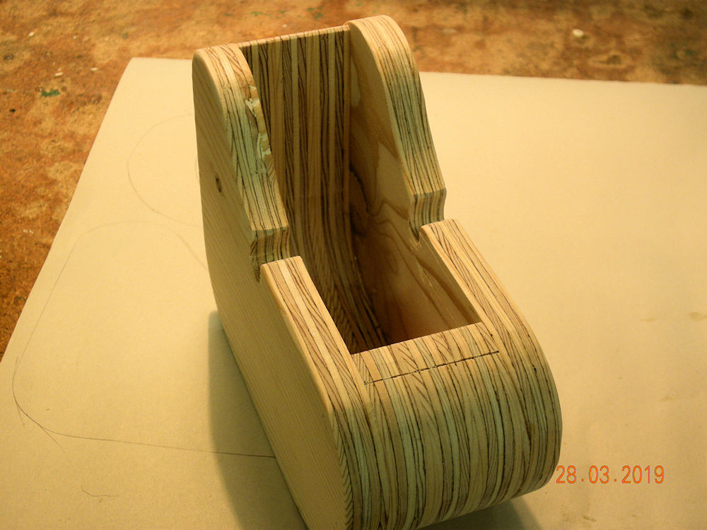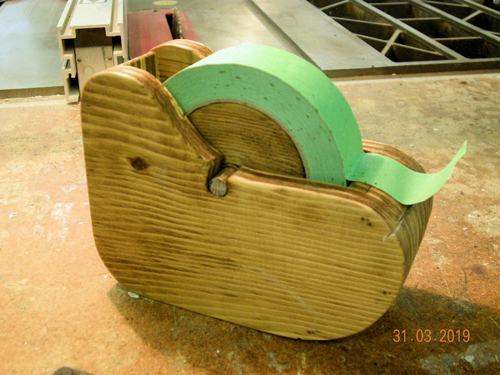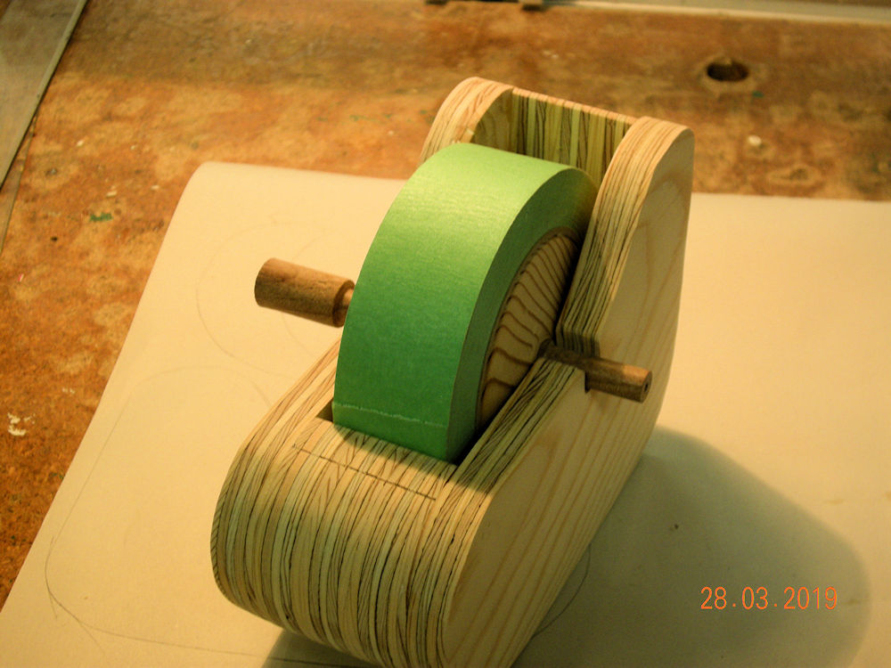Oops! Rotation of front spreader, got the edge too close to the tape roll. Time for a little retro hand work with that rasp. This is not a "new" roll of tape so.
