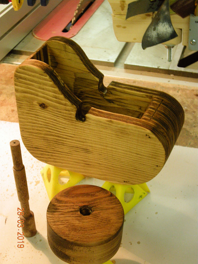 Like most of these things I could buy a device, but what fun is there in that? So I started a prototype with scraps of 5/8 plywood (left over from front deck rebuild).