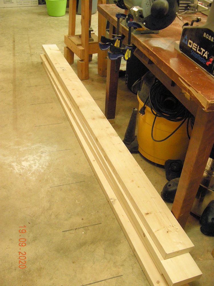 So we'll start off with a nice pile of SPF 2 x 6 and turn them into a potato bin and a lot of saw dust (see the new dust collector system below)