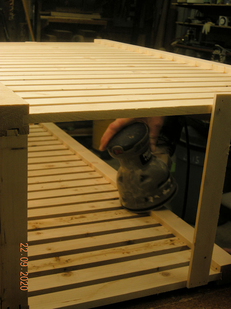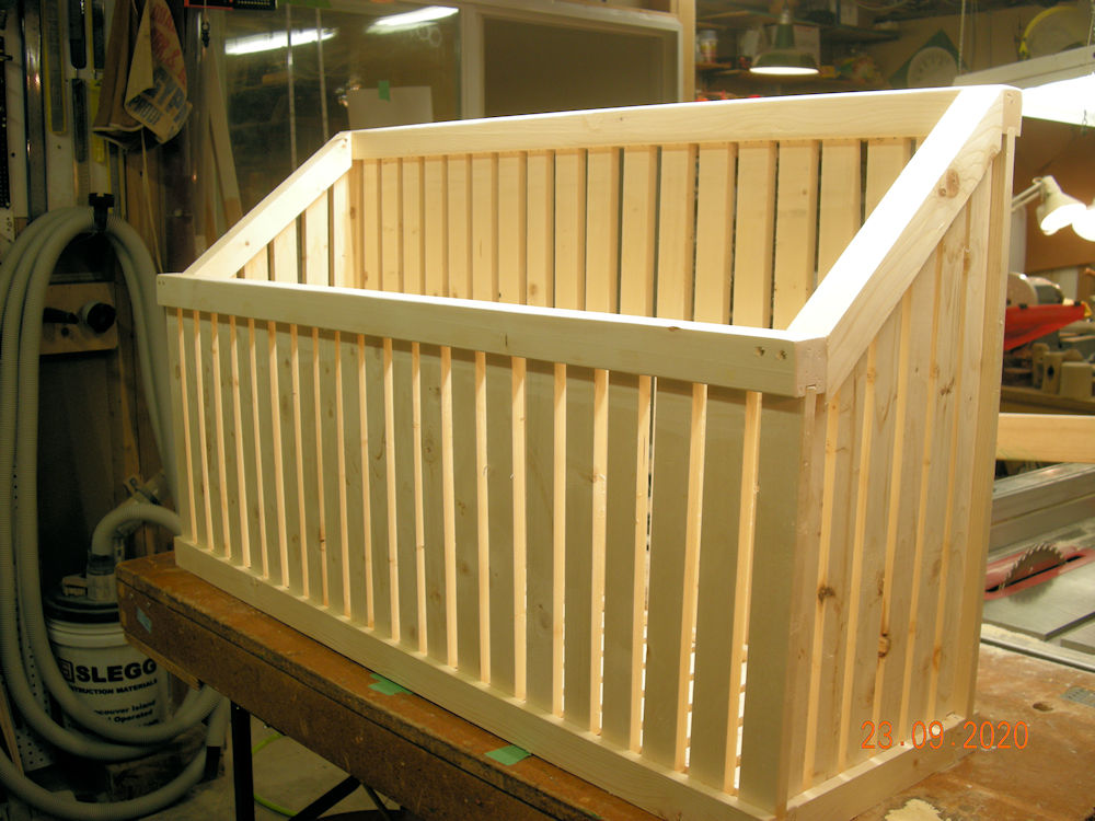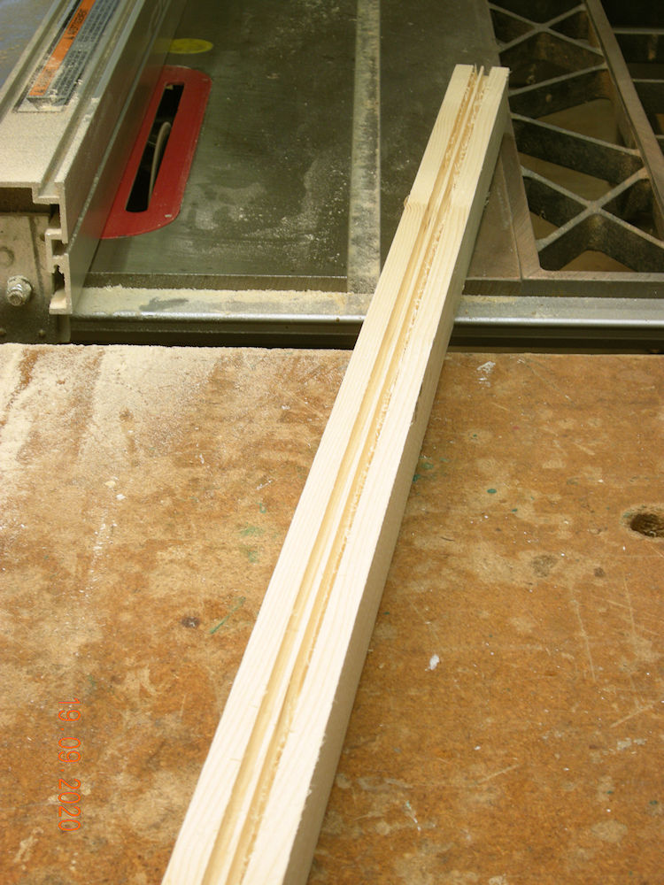 After cutting to width, a groove is cut in the side to hold the slats that will make up the side walls.