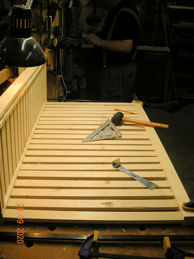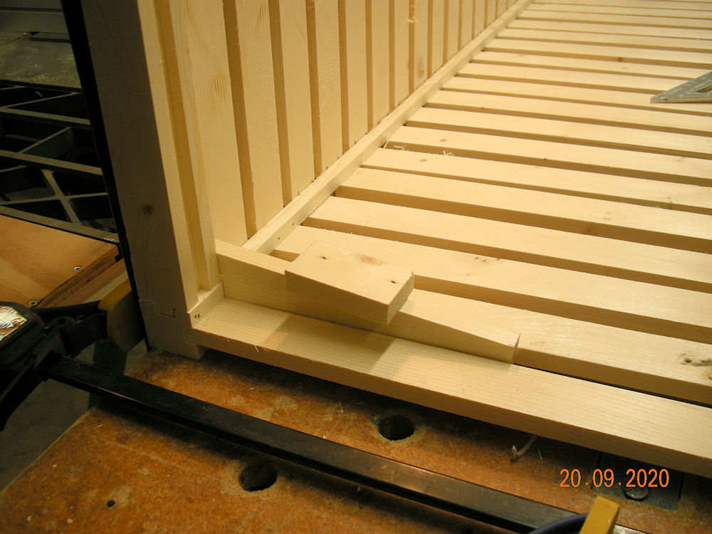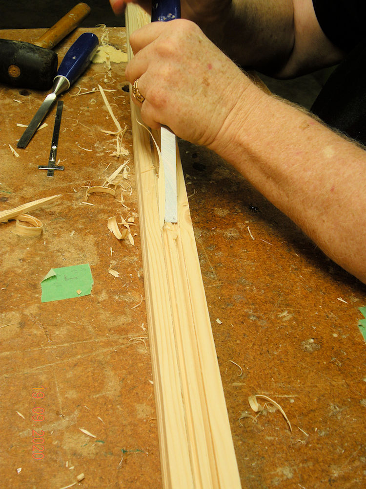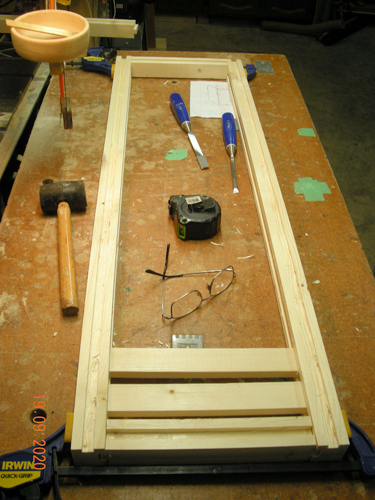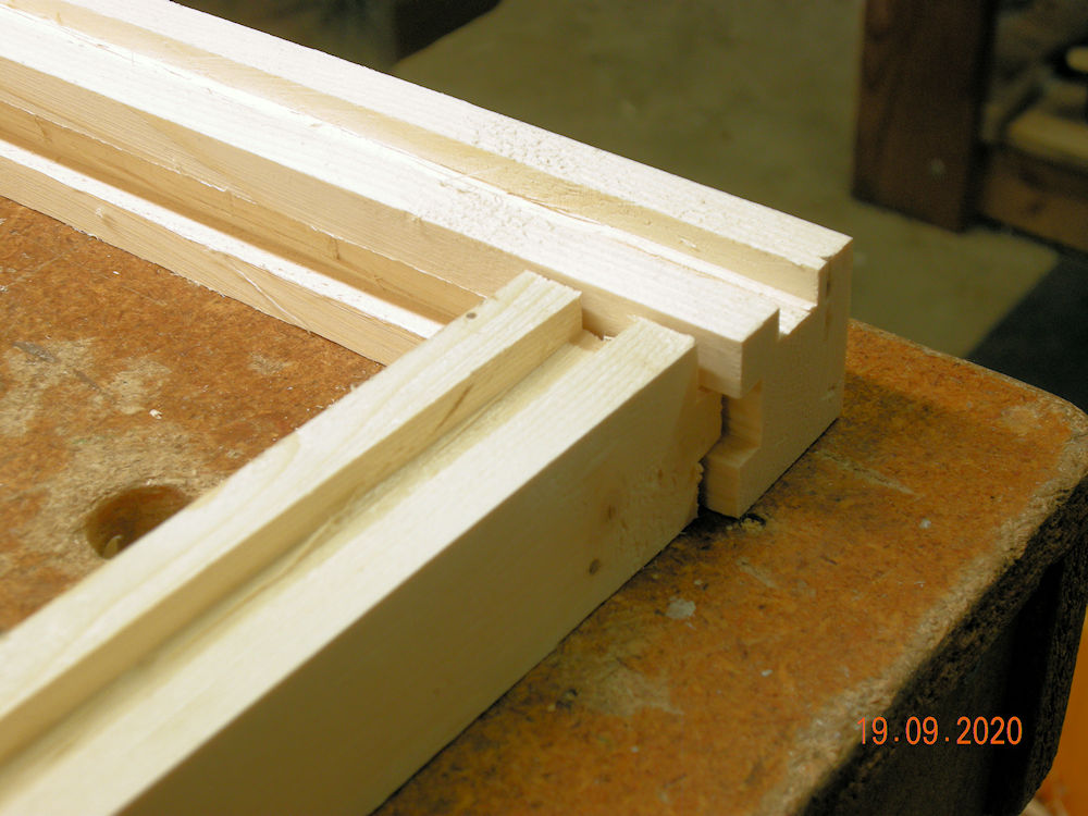 This is one of the four base frames. Dado cuts in two sides. One for bottom and one for side wall.
