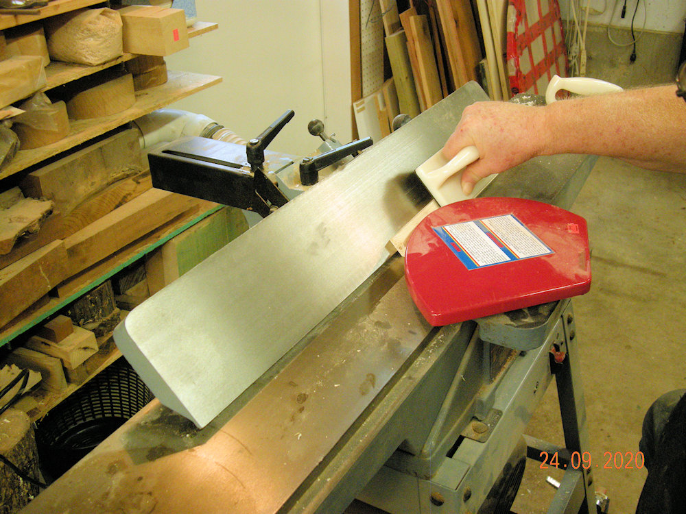 Using the jointer to cut 45o bevels for sliders for the section dividers.