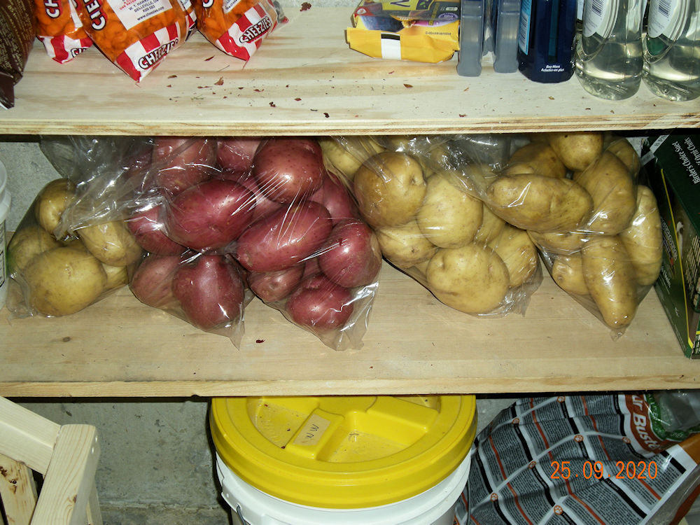 For years we have purchased potatoes in the fall and stored them in cardboard boxes where this pail sits. They have done really well considering, but maybe they could do with a little more air flow.