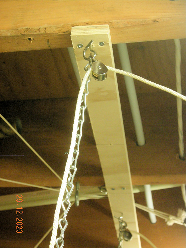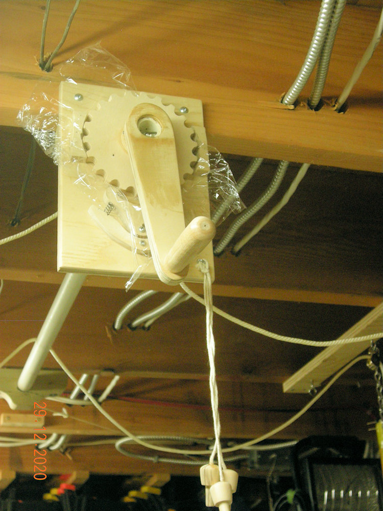 This is the other end, and the rope doesn't "pile" up. End result is this end of the lights doesn't raise as fast, or as high as the other end. I figured this was a done deal when the parts came together this afternoon!